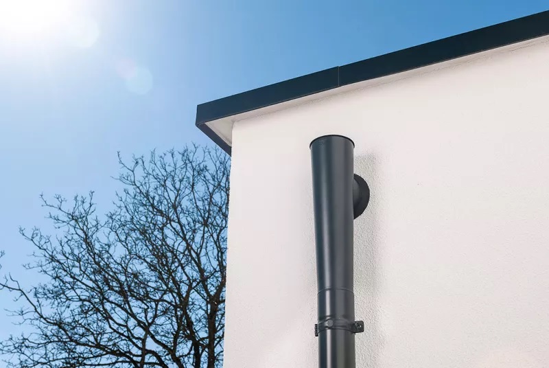 Der Attika-Stutzen lässt sich problemlos mit allen gängigen Flachdach-Entwässerungssystemen kombinieren und setzt belebende Akzente bei der Gestaltung der Außenfassade.