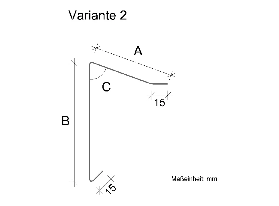 Der Standardwinkel (c=70°) ist passend für die handelsübliche Holzkeilbohe 5cm hoch und 14cm breit. Auf Wunsch kann der Winkel auch nach Ihrer Vorgabe gefertigt werden (-> Maßanfertigung, keine Rückgabe möglich).