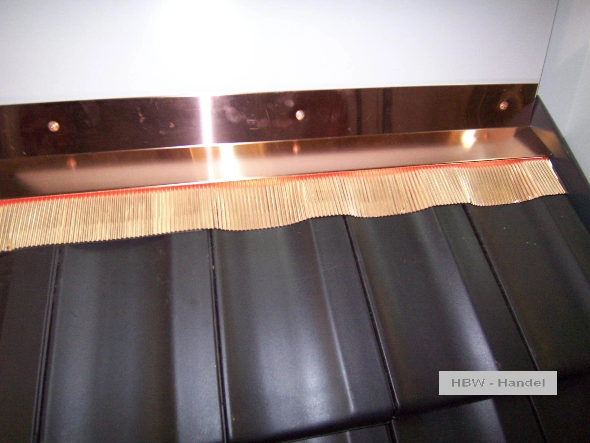 Anschlussblech mit herabgezogener Schürze für Wandübergänge am Dach – dient der wetterfesten Abdichtung und sauberen Abdeckung des Übergangs zwischen Dach und Hauswand.