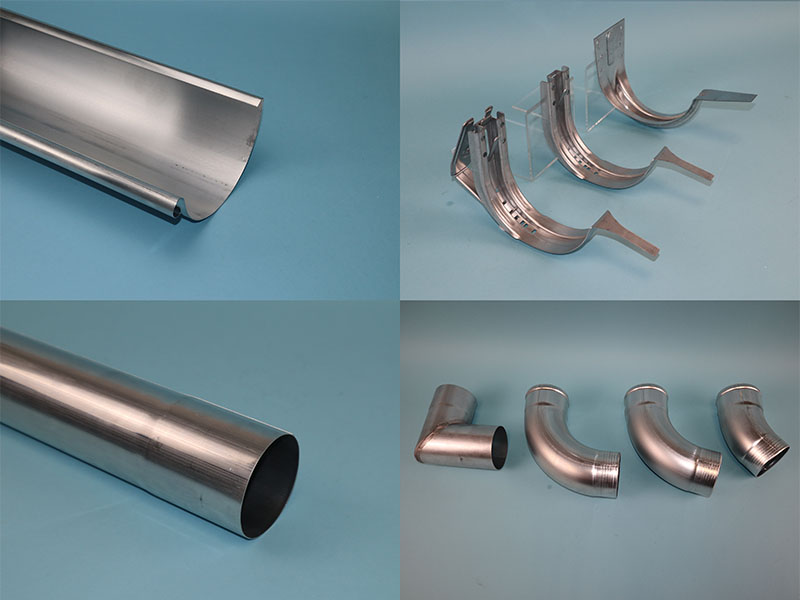 Titanzink ist ein sehr häufig verwendetes Material im Dachblech und Spenglerartikelbereich. Das Material bildet eine natürliche Schutzschicht, die Patina. Eine ausführliche Beschreibung dazu finden Sie hier. Es hat gute Verarbeitungseigenschaften, d.h. es lässt sich Weichlöten und Falzen. Die Verarbeitungstemperatur sollte aber über 5° betragen. Es eignet sich deshalb besonders gut für Dachrinnen und Blechprofile. Die Lebensdauer liegt im Regelfall bei über 50 Jahren. Im Lieferzustand ist es metallisch hell glänzend, nach Kontakt mit Wasser bildet es erst Flecken nach einiger Zeit entsteht daraus die mattgraue Patina.