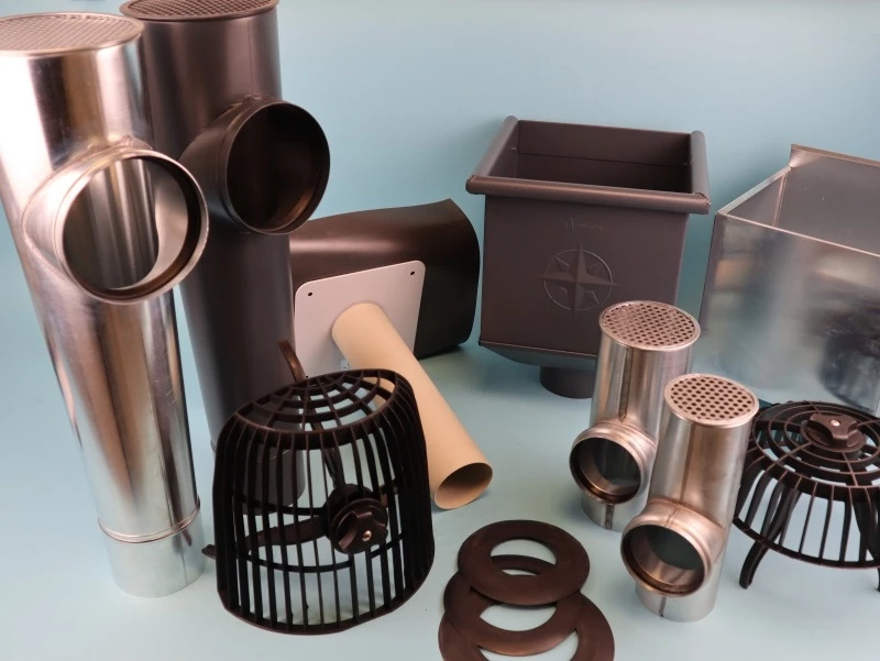 Sollte eine dezente Entwässerung an der Hausfassade gewünscht sein, so eignen sich die schmalen Attika Stutzen und die kleinen Flachdachabzweige mit Lochblech bestens. Die schlanke Form ermöglicht einen Einbau direkt an der Wand.