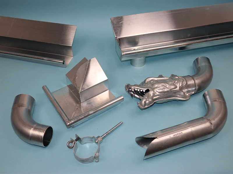 Wir können für die Kleindachrinne auch Ecken fertigen. Diese sind als Beispielbild in der Artikelbeschreibung zu sehen. Für die Fertigung wird eine Skizze benötigt, in welcher die Einzellängen sowie die Position der Ecke ersichtlich sind, dann kann dies entsprechend gefertigt werden. Wir bitten daher um eine Angebotsanfrage per Email inklusive der Skizze, gern über unser Kontaktfeld.
