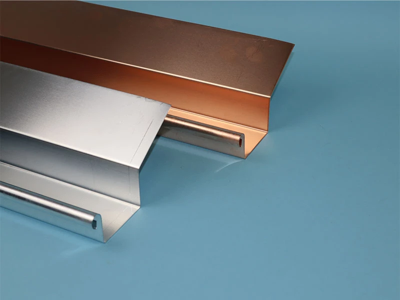 Der Kunde gibt bei der Bestellung sein Fertigmaß der Dachrinne an. Wir rechnen entsprechend der Stückelung die notwendige Überlappung hinzu und stellen die einzelnen Teile mit Überlappung her. Bei der Teilung der Stücke wird darauf geachtet, dass die entstehenden Stücke in etwa gleich lang sind.