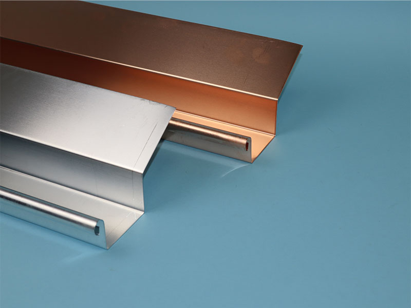 Der Kunde gibt bei der Bestellung sein Fertigmaß der Dachrinne an. Wir rechnen entsprechend der Stückelung die notwendige Überlappung hinzu und stellen die einzelnen Teile mit Überlappung her. Bei der Teilung der Stücke wird darauf geachtet, dass die entstehenden Stücke in etwa gleich lang sind.