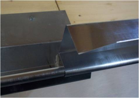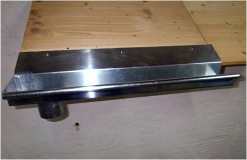 Beginnen Sie mit der Montage des 1. Teils (mit Ablauf), die Befestigung sollte mit Schrauben erfolgen. Tipp: Bohren Sie die Löcher im Blech vor, dann lassen sich die Schrauben leichter eindrehen.