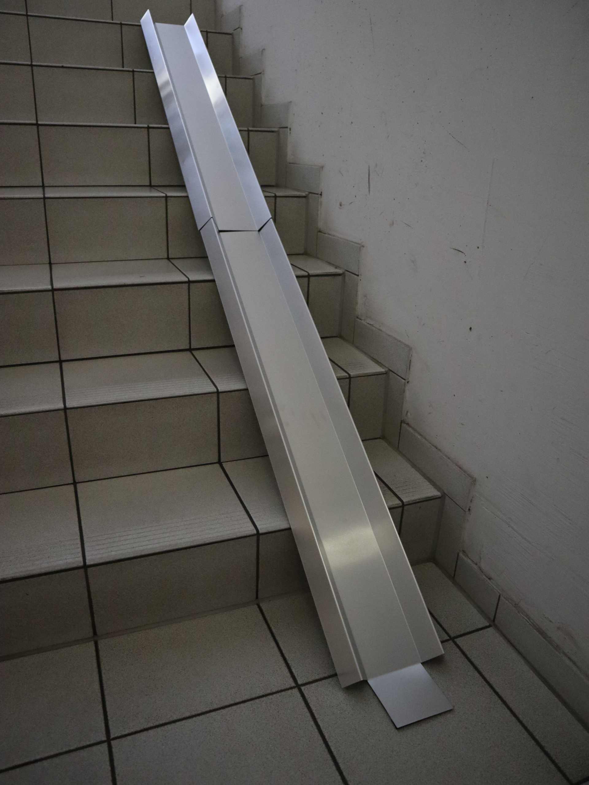 Die Rampe ist für Kellertreppen und Außentreppen bestens geeignet. Grundsätzlich kann die Rampe ohne Befestigung aufgelegt werden, an den Kontaktflächen ist ein Antirutschauflage vorhanden. Daher lässt sich sie leicht verschieben, um z.Bsp. die Treppe zu reinigen. Bei sehr glatten Bodenbelägen bzw. ungünstigen Treppenneigungen kann eine Befestigung notwendig sein.
