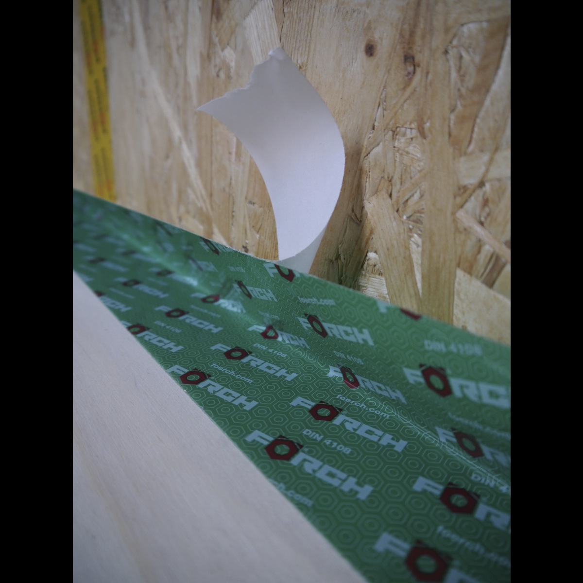 - aggressiv klebendes Band zur luft- und winddichten Verklebung von Durchdringungen, Überlappungen von Folien und Unterdeckbahnen, Stoßfugen von Holzplatten (z. B. OSB) und Anschlüssen im Innen- und Außenbereich
