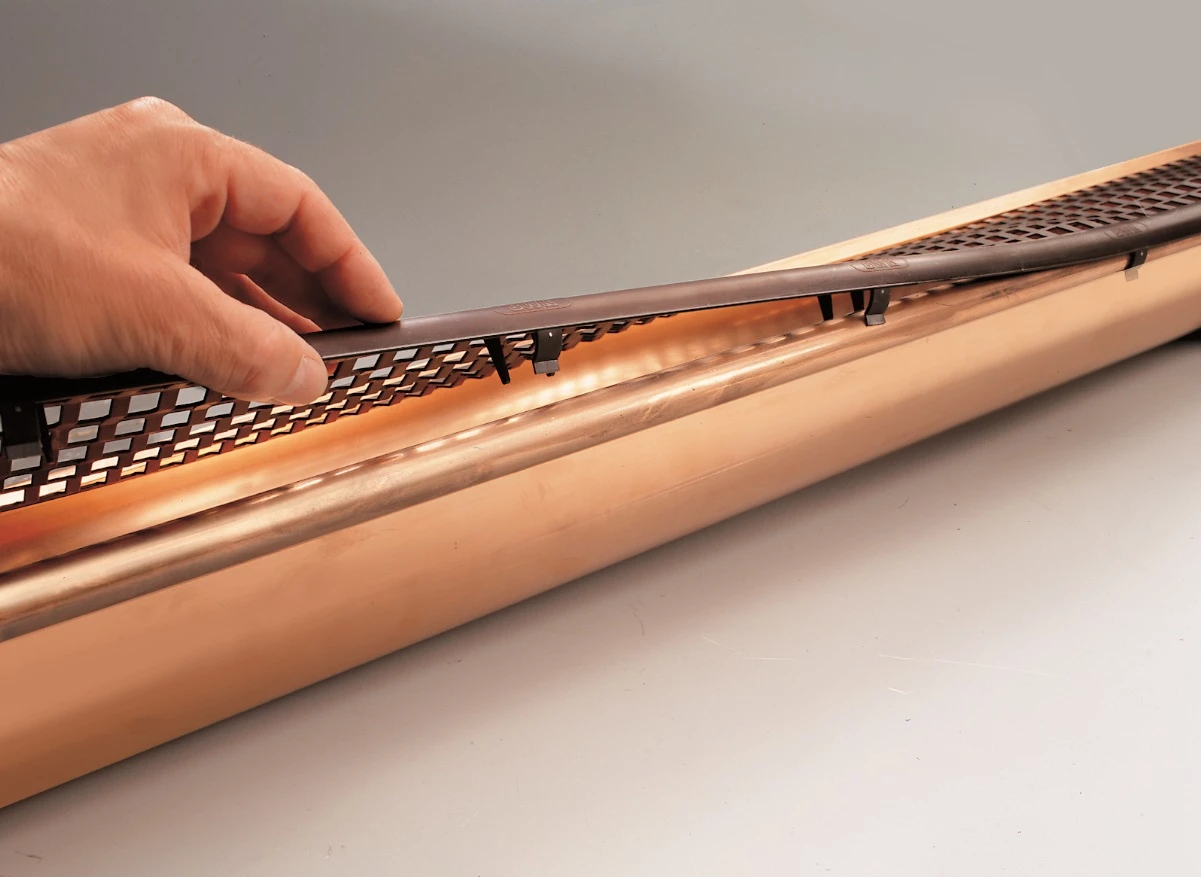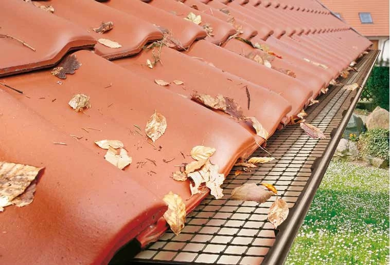 Das Laubschutzgitter wird auf die Wulst (Vorderkante) der Dachrinne eingeklickt und verhindert somit das Laub und kleine Äste in die Dachrinne gespült werden.
