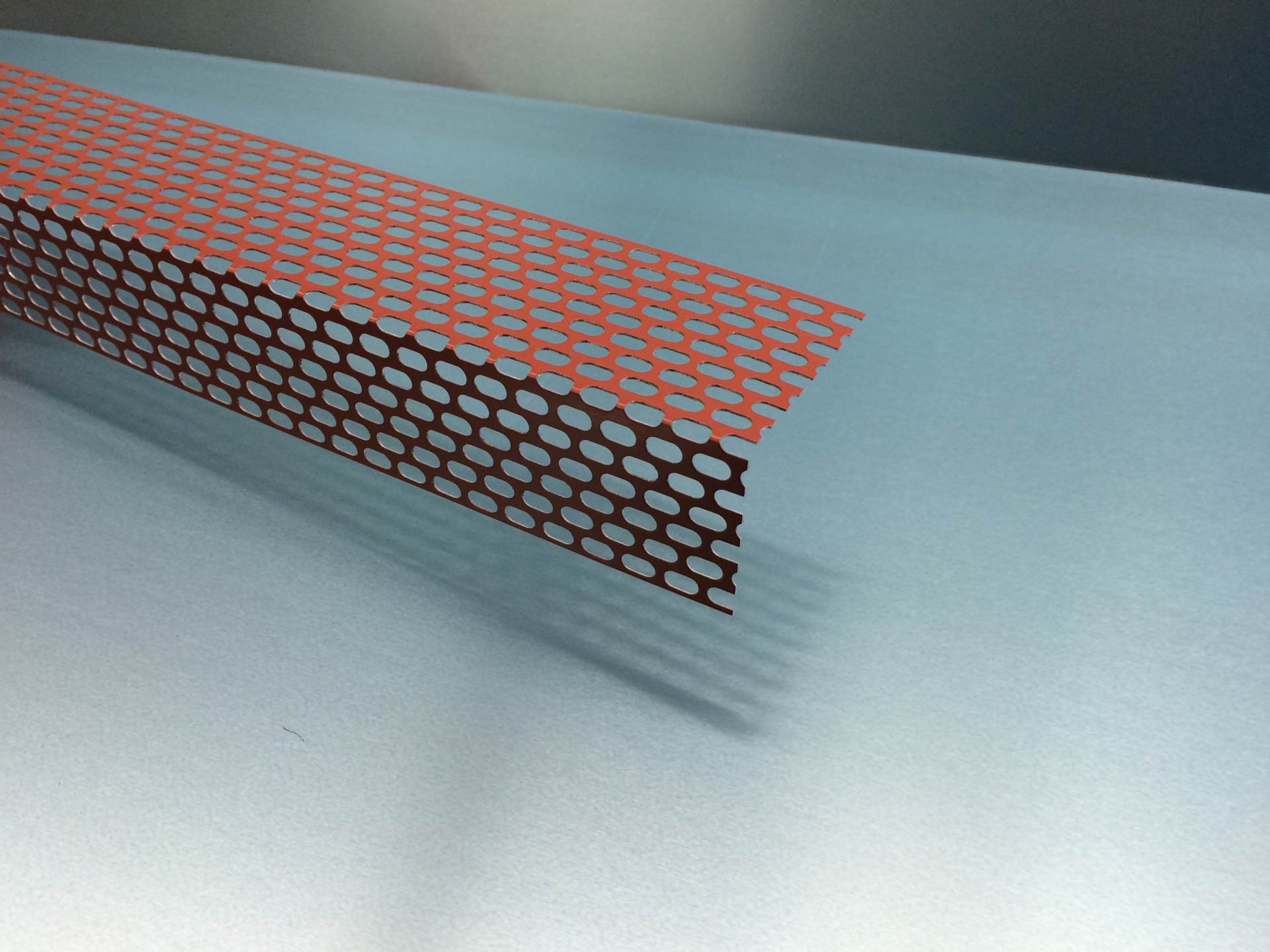 Bitte beachten Sie, dass farbige Lochblechwinkel nur einseitig mit der ausgewählten Farbe beschichtet sind und zwar immer an der Außenseite (wie auf dem Bild)!