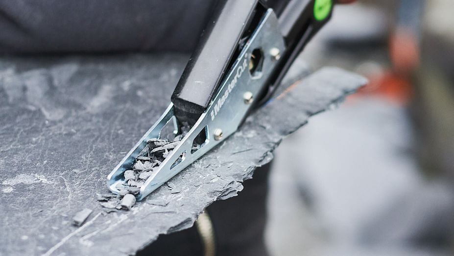 für alle Naturschiefer und Faserzementplatten bis zu einer Stärke von 6 mm, ob oben oder unten schneiden, die Bruchkante ist Richtigrum und alles im Blick