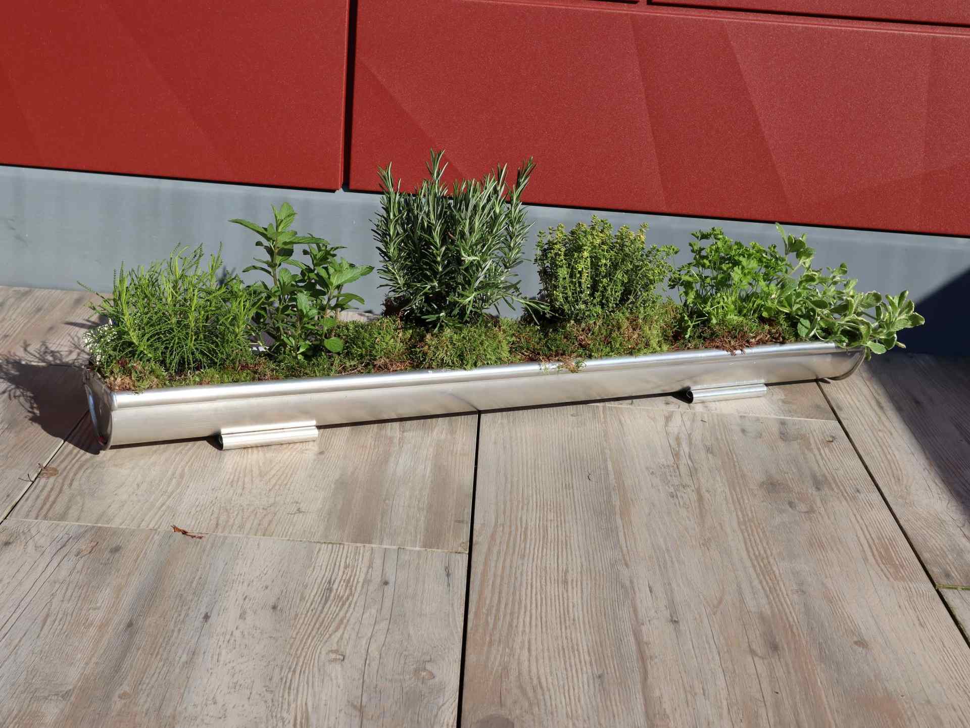 Dachrinne als Blumenkasten zur Bodenaufstellung oder Wandbefestigung, verwendbar als Kräutergarten, Blumenkasten oder zur Deko.