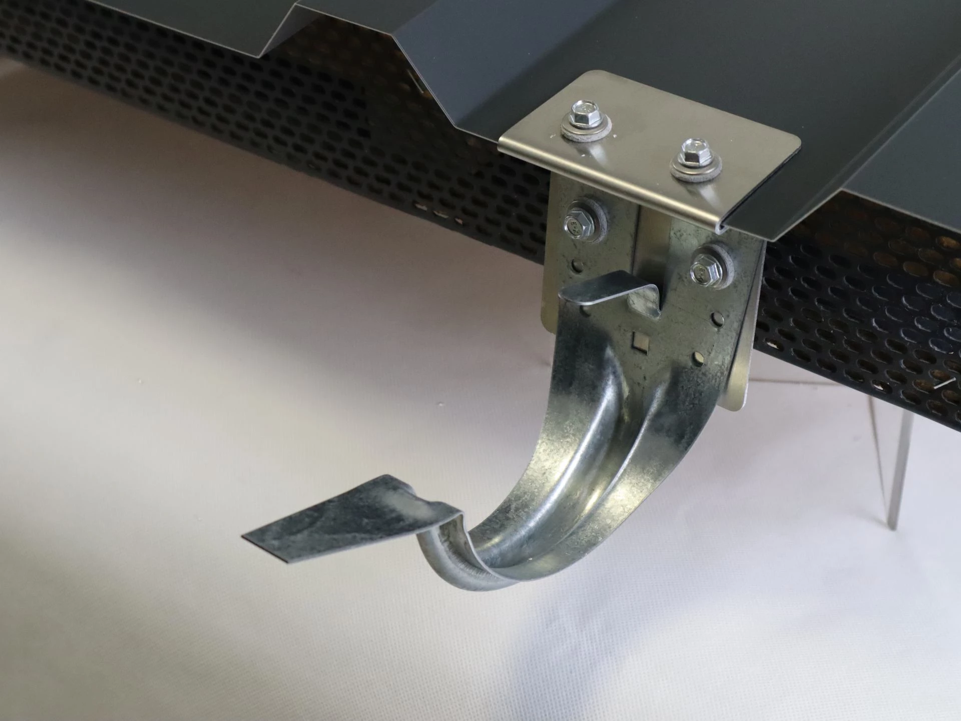 - mit dem Halteset ist eine beschädigungsfreie Montage der Rinnenträger am Trapezblech möglich