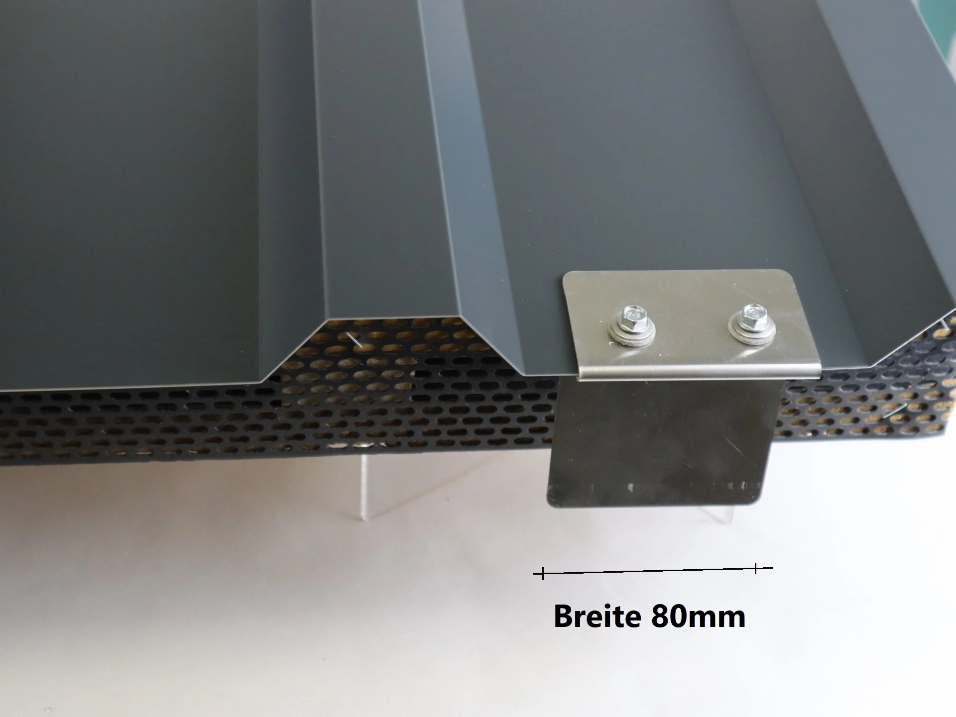 - Rinnenträgerset für Trapezblecheindeckungen besteht aus Haltewinkel und Stirnbretthalter (für Rinnengrößen DN 80, DN 100, DN 125) inkl. 4 Bohrschrauben